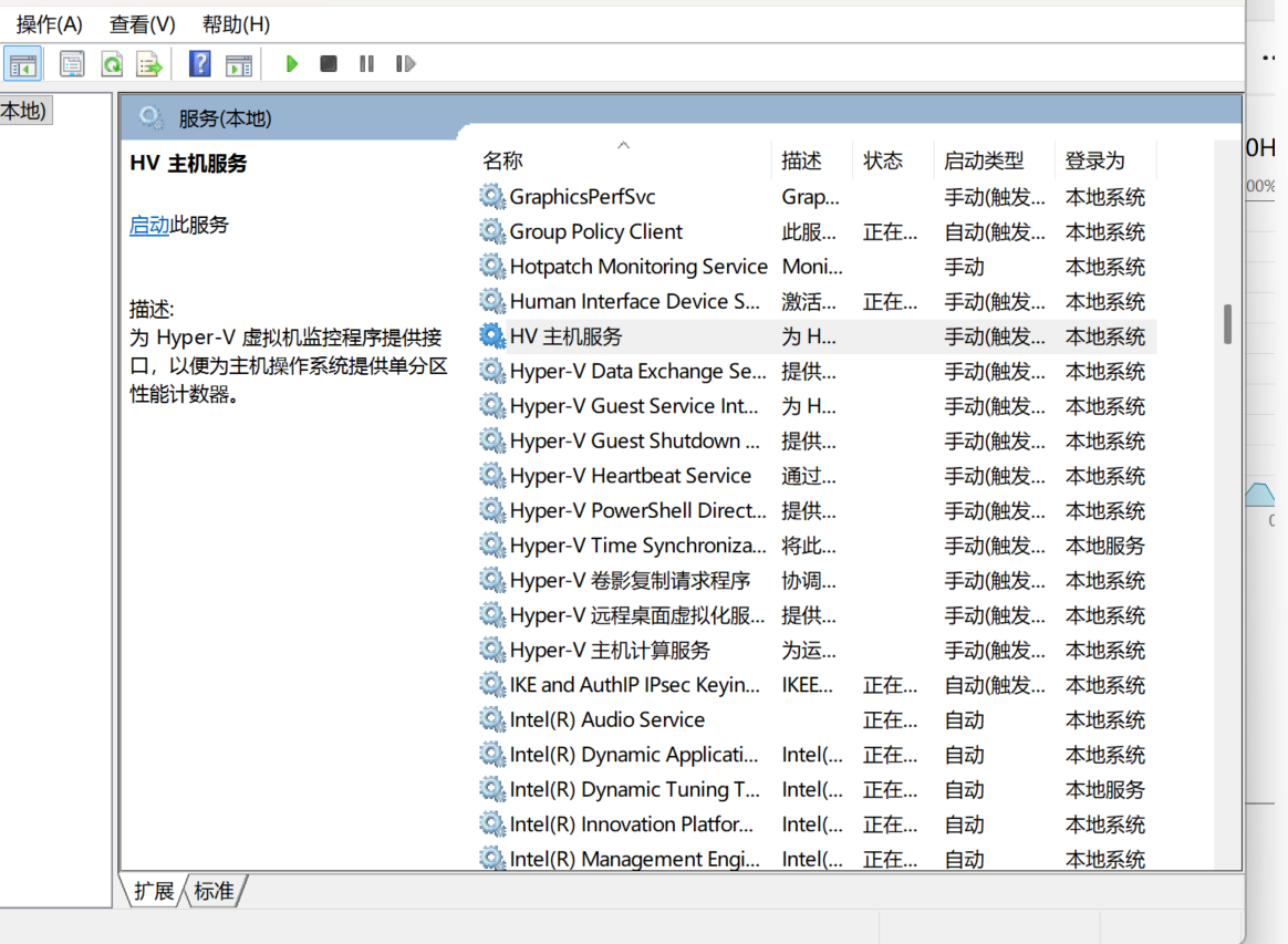 3.打开服务(可以在电脑搜索栏里直接搜索),找到HV主机服务,Hyper-V卷影复制请求程序,Hyper-V主机计算服务,右键选择属性,启动类型都选择禁用